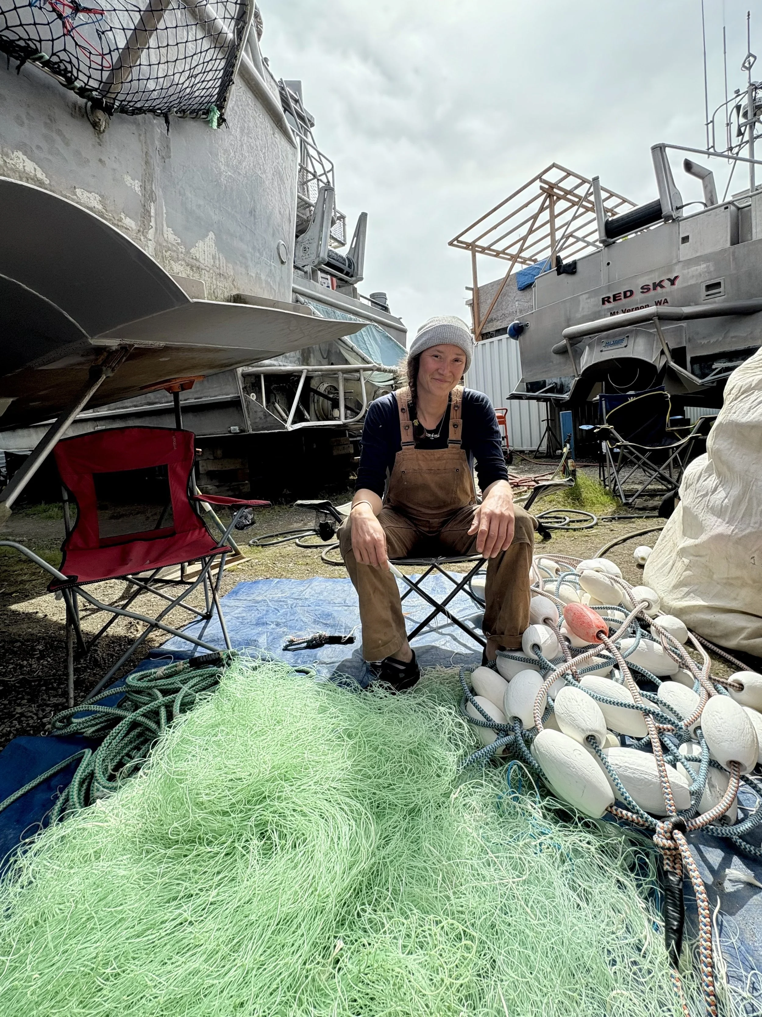 During the summer, I own and operate a 32-ft gillnetter called the FV Deborah. In a day, my 200 fathom (1200 ft) long net can run off and on the hydraulic reel anywhere from 8 to 70 times, bringing in anywhere from a few fish to upwards of 12,000lbs of wild salmon in a single haul. Throughout the season, as our nets become worn and ragged, we remove them from our reel and place them in bags with big red tags labeled, “TRASH”. At the end of the season, we “strip” all of the worn mesh off re-usable cork and lead lines, and send them off to be packaged up with our local recycler, “Net-Your-Problem”.